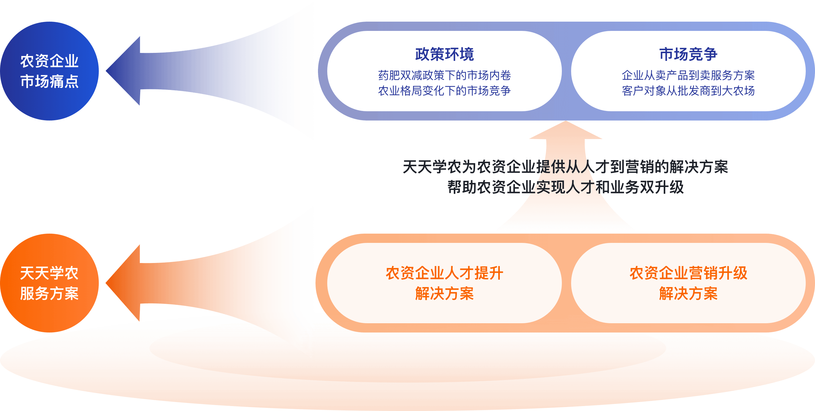 天天学农整合自身教育资源为农资企业提供含内容、 平台、 服务“三位一体”的农资企业人才提升方案培训服务 ,帮助农资企业多、快、好、省的开展企业人力资源培训服务,提高企业员工综合能力,助力企业业绩增长。